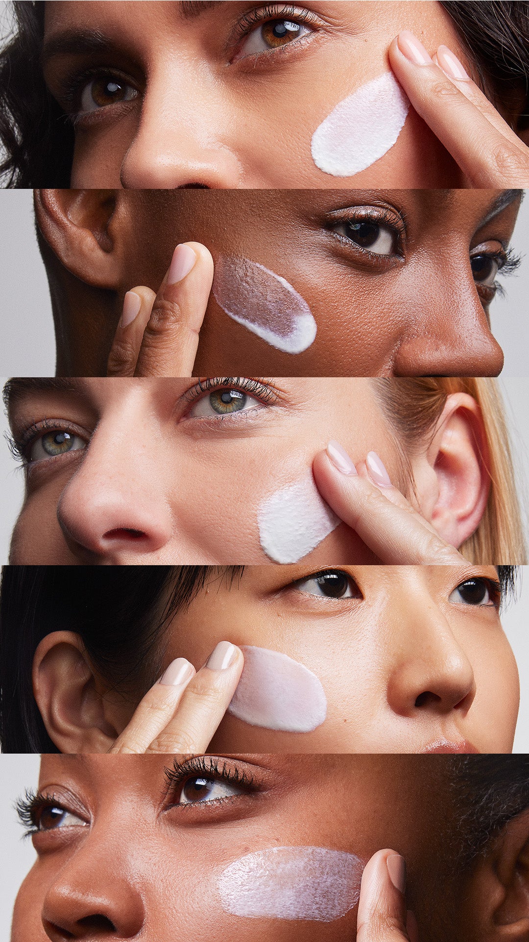 2. 완전히 흡수될 때까지 골고루 펴 발라주세요. 처음 나타나는 하얀색은 도포 가이드 역할을 하며 3~5분 후 사라집니다.